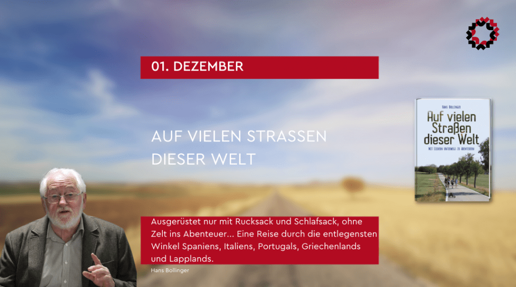 Am Mittwoch, den 01. Dezember, um 18.30 Uhr präsentiert der Autor und Liedermacher Hans Bollinger sein neues Buch „Auf vielen Straßen dieser Welt“ im Haus der Union Stiftung. Neben Anekdoten aus seinem Werk spielt er Lieder auf der Gitarre.