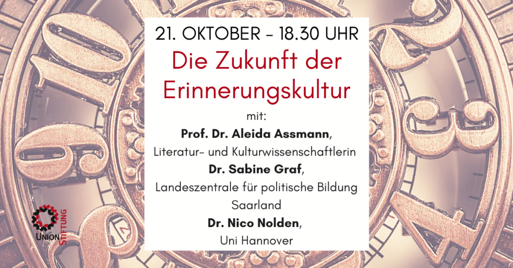 Die Erinnerungskultur in Deutschland und weltweit verändert sich ständig. Aber selten wurde dieser Wandel so deutlich wie heutzutage. Wo kommt unsere Erinnerungskultur her? Welche Rolle spielen aktuelle Debatten, aber auch die Digitalisierung in Bezug auf den Wandel der Erinnerungskultur? Und wie könnte sie in Zukunft aussehen? Darüber sprechen am Mittwoch, den 21. Oktober, um 18.30 Uhr, die Kulturwissenschaftlerin, Prof. Aleida Assmann von der Universität Konstanz, Dr. Sabine Graf von der Landeszentrale für politische Bildung im Saarland und der Historiker Dr. Nico Nolden von der Universität Hannover.