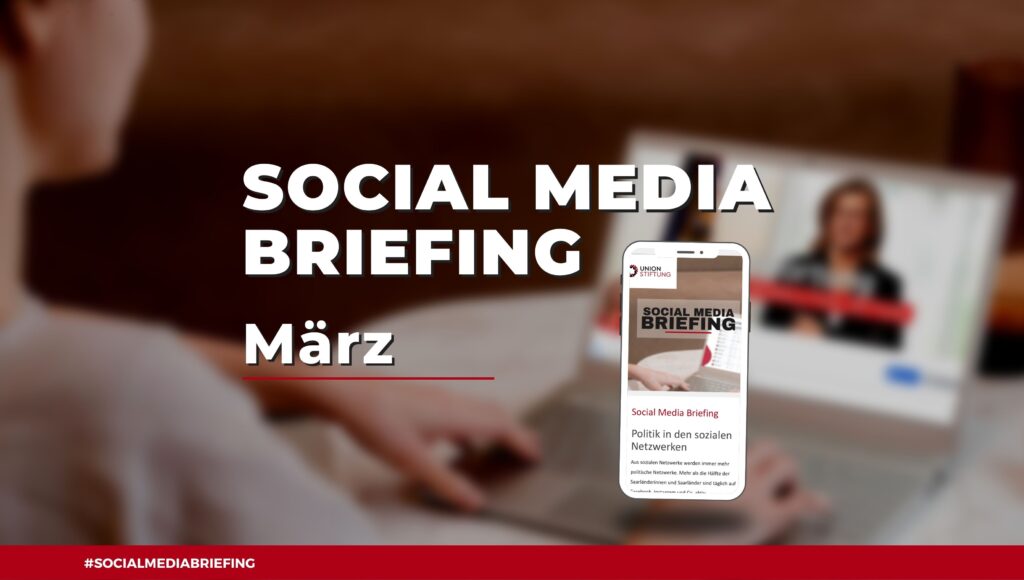Die Union Stiftung untersucht in einem monatlichen Briefing, wie saarländische Politikerinnen und Politiker, Kommunen sowie politische Institutionen auf Facebook, Instagram, LinkedIn und Twitter agieren. Das Briefing ist kostenlos unter www.unionstiftung.de/briefing abrufbar.